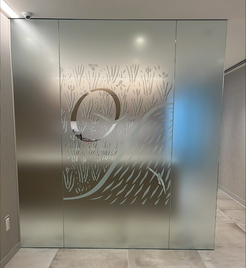Unable to imagine the new location without this sentimental piece, they opted to recreate the piece on new glass with frosted window film. Whereas it wouldn’t be the same, it would still be a form of inspiration and a reminder of the heritage of the corporation/this family-owned business.